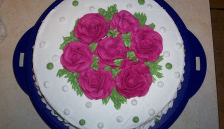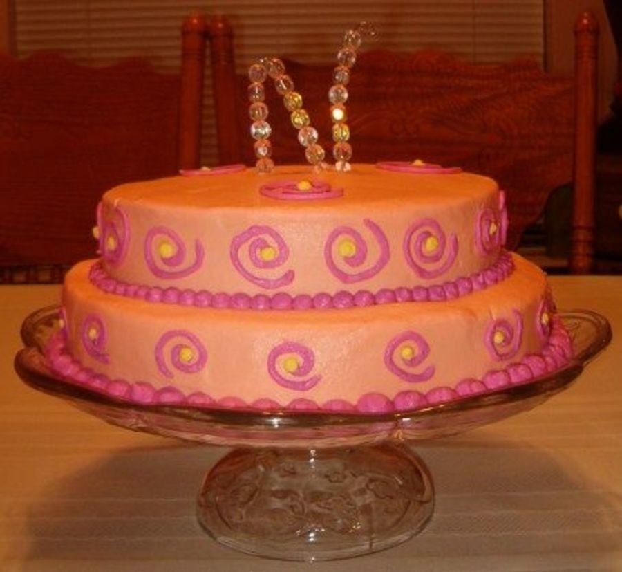 White cake with Buttercream Icing. I used the Viva Paper towel method. Orange with fucia swirls.