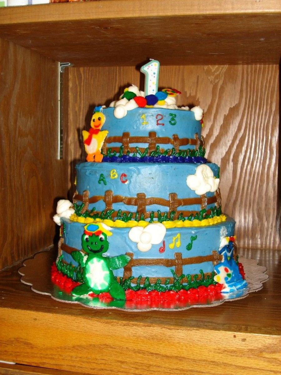 This was done for my best friends son who just turned one, it also had a cute matching smash cake. It was also done in the middle of July and all my FBCT melted! Not to mention the cream cheese frosting doesnt really tale kindly to that intense of heat! All in all it turned out! lol!