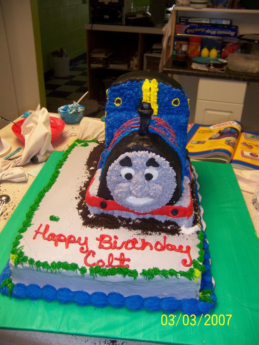 THOMAS THE TRAIN CAKE ALL HAND done no KIT. COpy form a book.