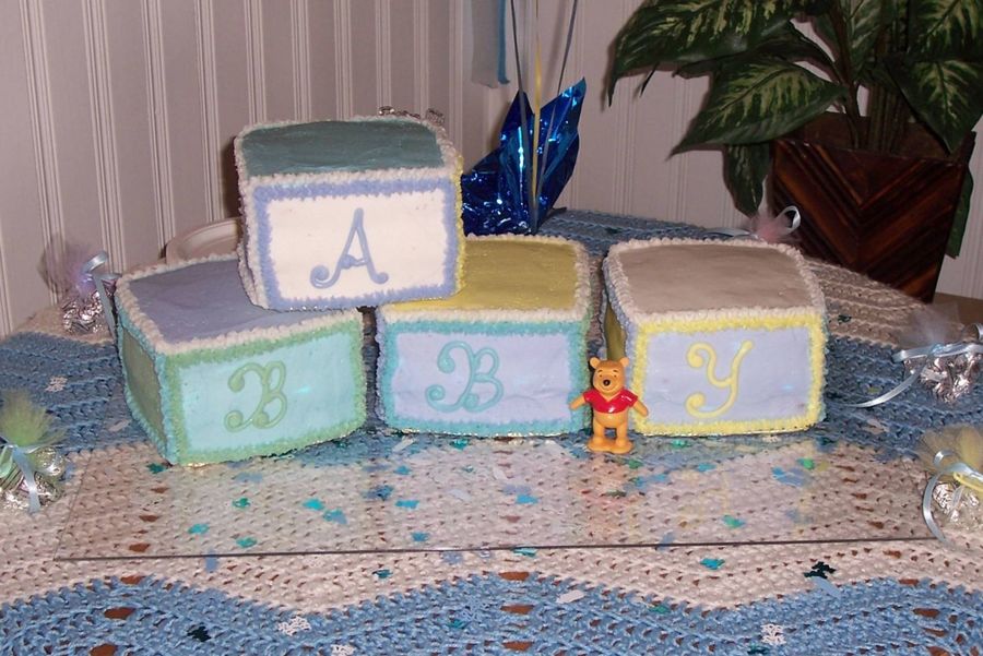 This was for my niece's baby shower. It is just 4-6" square cakes iced with multi colored buttercream icing. Simple decoration. It turned out cute.
