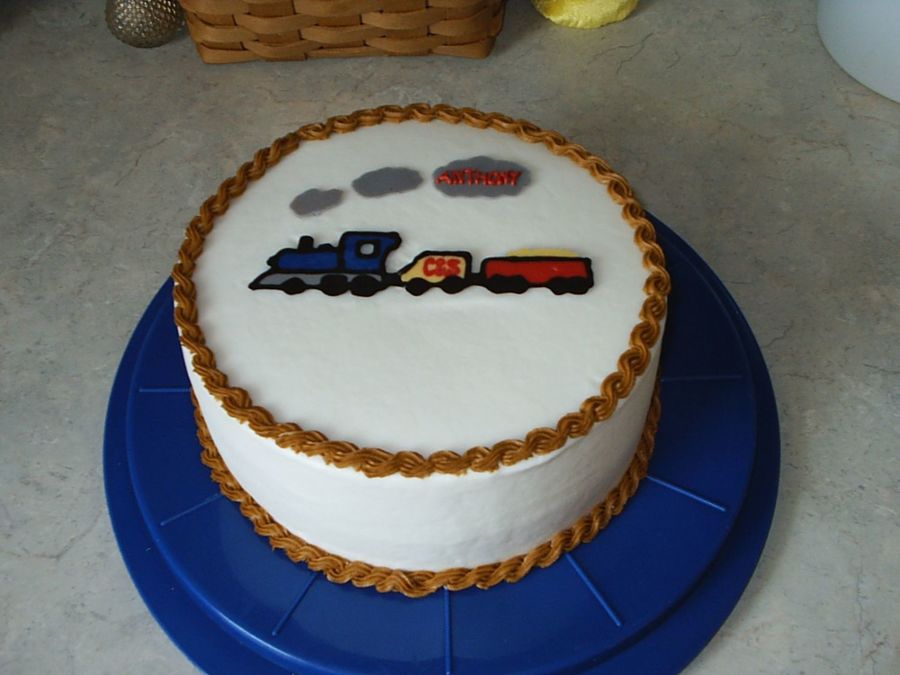 This is an 8 inch round, WASC cake with almond buttercream and cherry filling. Yummy! The train on top