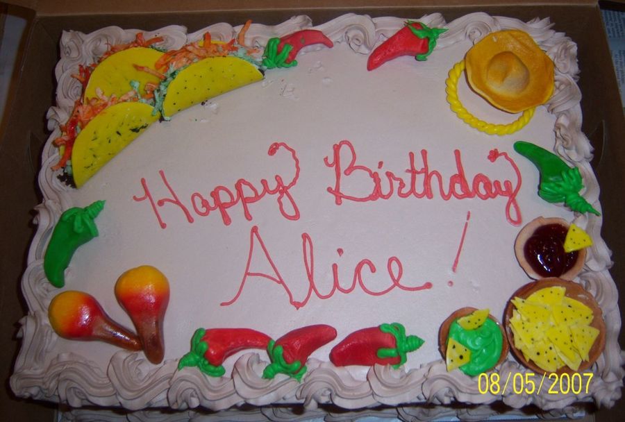 chcoclate cake, chcolate whipped cream, with both gumpast and fondant decorations. strawberry "salsa",MMF chips, edible tacos