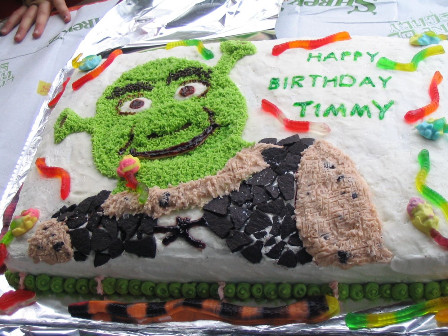 KimAZ on 12 Aug 2005 , 7:03am How cute! Love Shrek! You did a really good job on him. Love the gummi worms too.