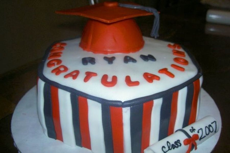 striped fondant cake. white cake with custard filling. Cap made of fondant also.