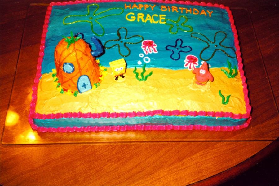 I made this cake about a year ago for my niece. It is a white cake frosted with buttercream. The pineapple is a cake I baked inside a coffee cup and frosted and decorated with butter cream. The figures are made with fondant.