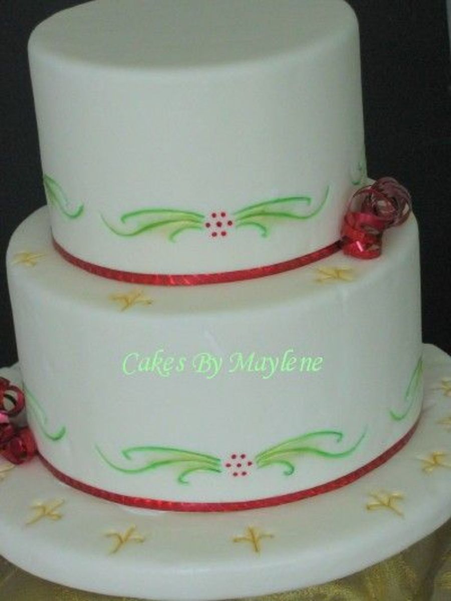 MayWest on 7 Dec 2006 , 10:03pm Thanks!! Yes, the base is covered in MMF. Not hard to transport. The cake looks bigger in the picture than it is. The rounds are 6 and 10.