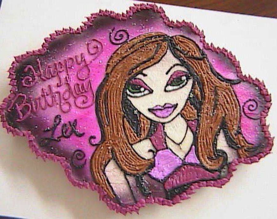 This is a cupcake cake design I did for my cousin's daughter. I'm still trying to tweek the Bratz design. Those eyes get me everytime. I have the toughest time getting them right. LOL LOL Doesn't compare to some other Bratz cakes on here, but thanks for looking :D