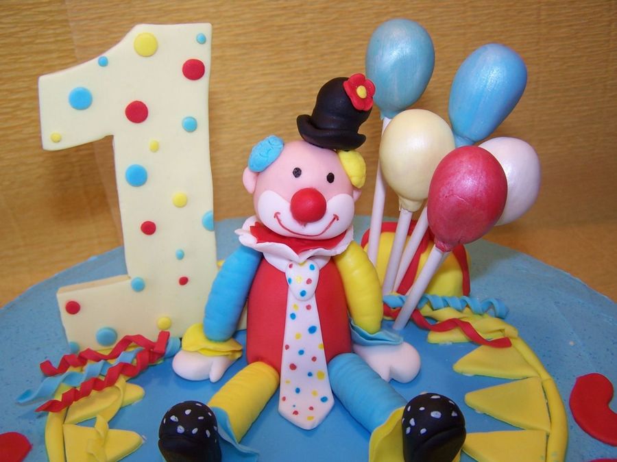 Hand molded clown (fondant+gumtex) for Nicholas' first birthday cake. A lot of fun!!