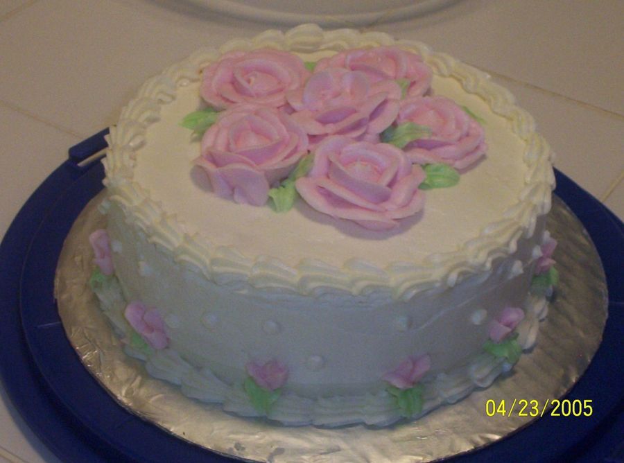 This was the first cake I made for a class with BC roses. I kind of got the idea from a Wilton ready-made icing box.