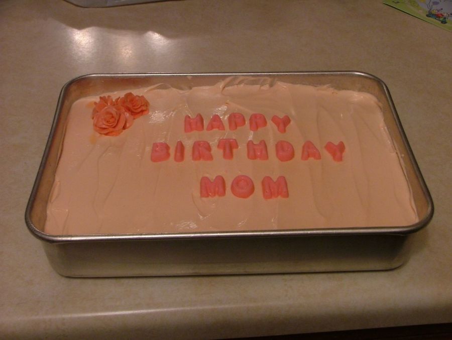 This is a quick cake that I made for my mom for her birthday. It is a strawberry cake with whipped cream strawberry frosting. The roses were made out of strawberry starbursts. We don't have much room in our fridge, so this was the only type of pan that would work considering it had a lid.