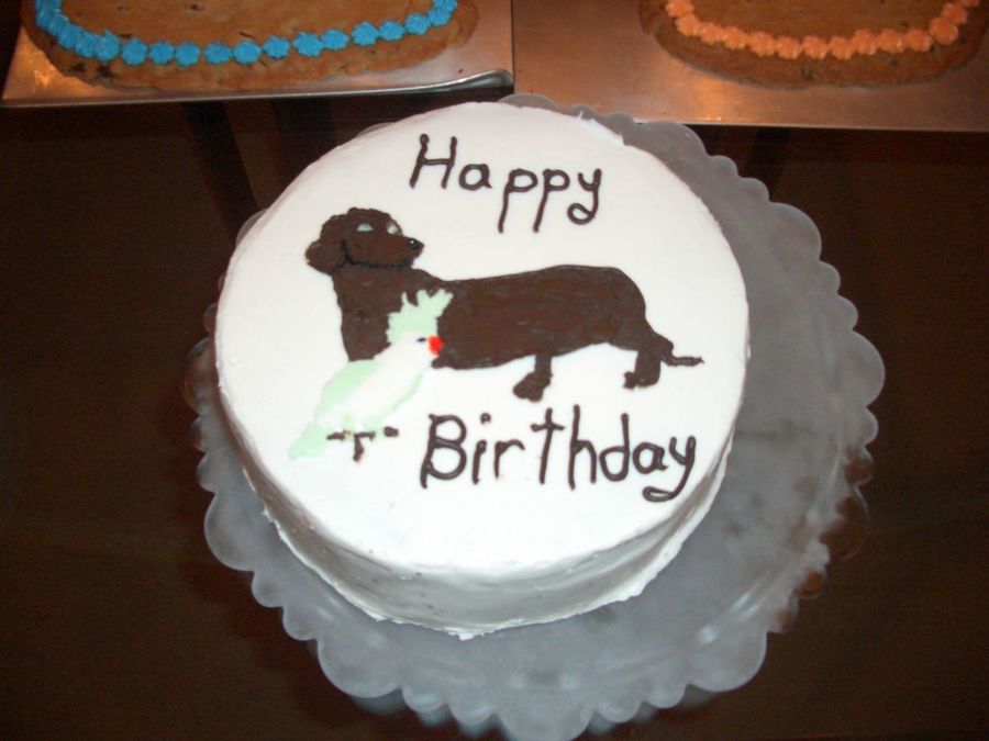 OK... this cake is totally blowing my mind because I had a Dachsund & a cockateil growing up too! Great cake!! :)