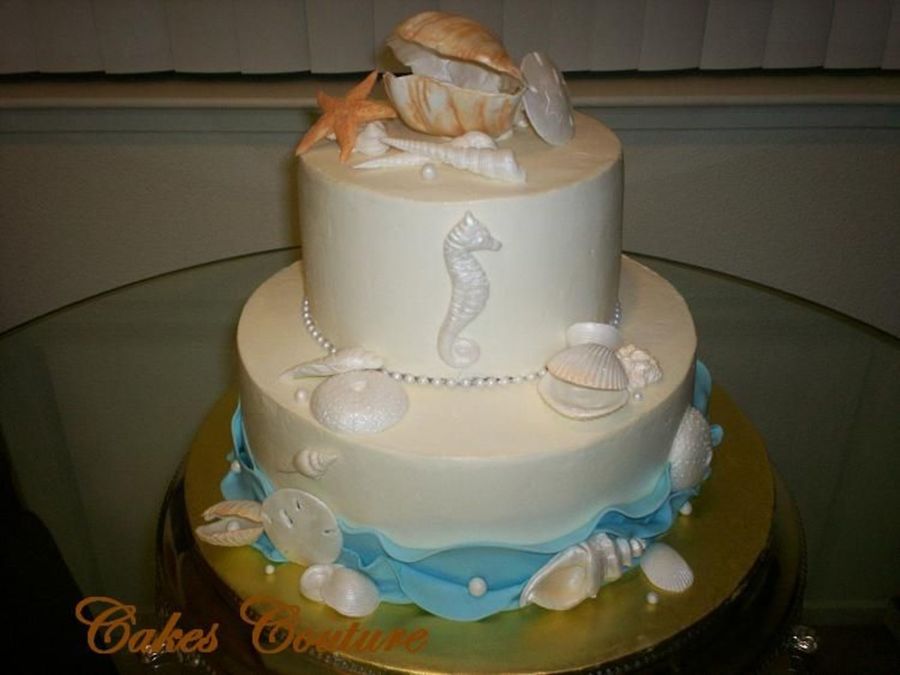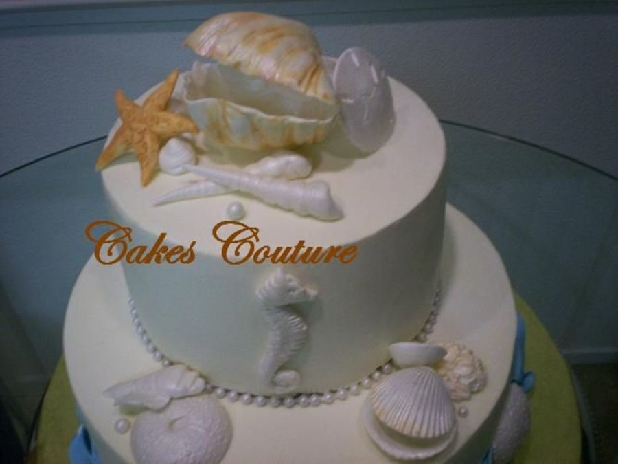 oh my gosh, shirley, this is gorgeous! it has so many elegant touches to it. i LOVe the waves and the really unique shells., not to mention your PERFECTLY smooth icing.