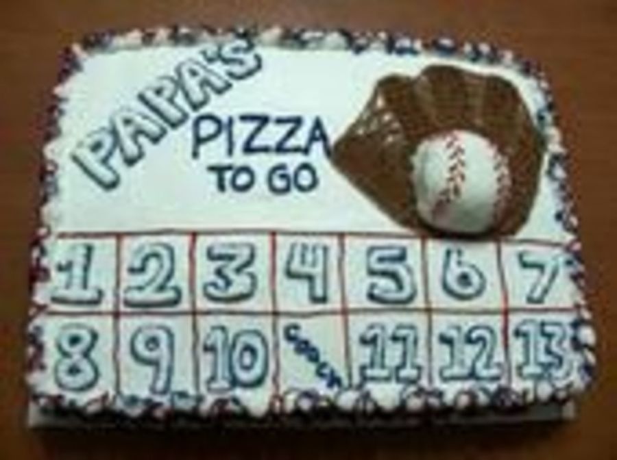 My daughter was on a T-Ball team this year and I made the cake for their end of season party... everyone got the piece of cake with their jersey number on it and there was plenty left for parents... the ball was actually a Little Debbies coconut covered snowball.