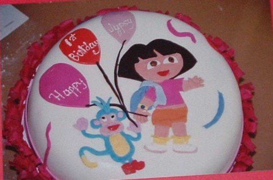 yellow cake with heath bar covered in fondant. figures are made from fondant.