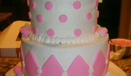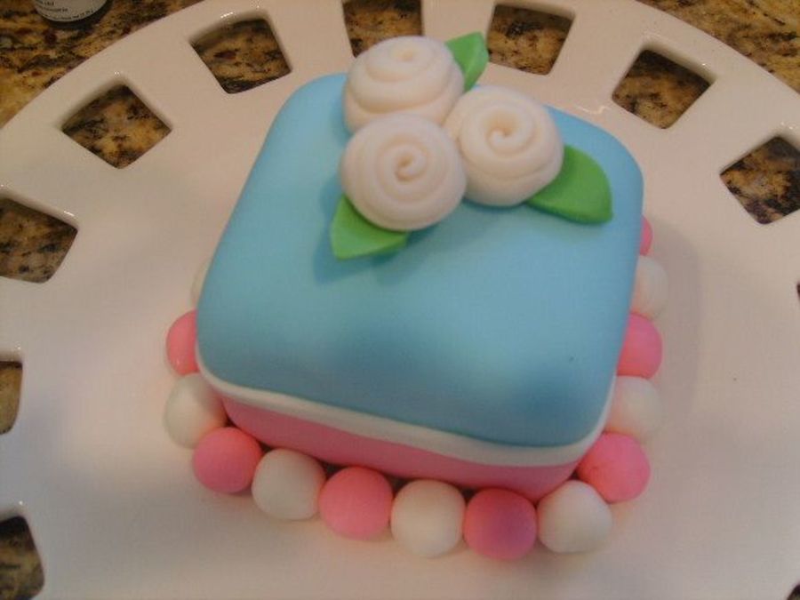White cake with strawberry filling and BC. Covered in fondant and fondant accents. This was the first cake I have ever made so I went small. I was so nervous while making this little bitty cake!