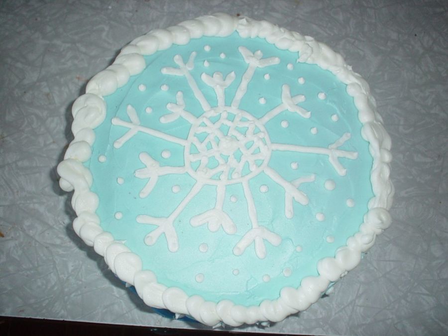 My first snowflake cake hehe. I need practice. It's a chocolate mint cake with chocolate pudding filling, and a minty buttercream. Made it for my hospital floor's chrsitmas party.