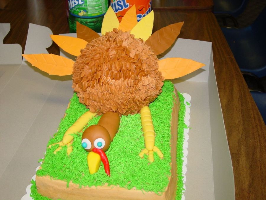 1/2 vanilla, 1/2 chocolate, the turkey body was red velvet. Fondant feathers, body, eyes and legs. This was a cake for my niece's 9th birthday. She likes to hunt and wanted a turkey. This cake was completely inspired by this website. I made this a few weeks ago, so I'm very sorry I don't remember who I got the idea from, but thank you so much.