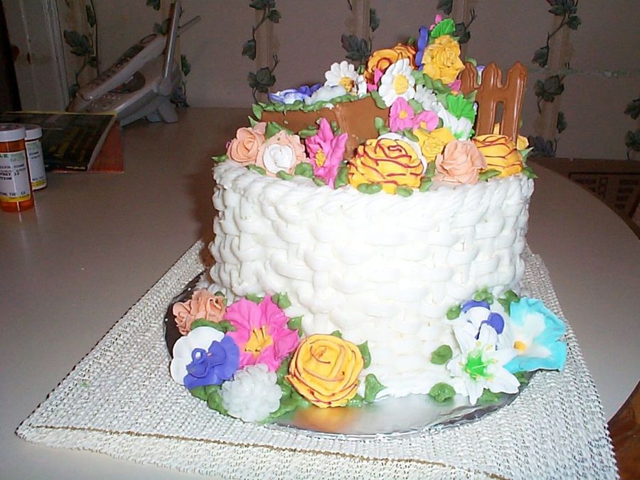 Course Two Cake with Garden Cart of Flowers & Basketweave