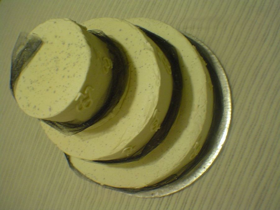This cake was a donation. There was no topper but it has really pretty toule wrapped down the cake. Simple but elegant.