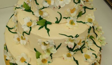 That is one of the most beautiful cakes I have ever seen, I love the simplicity and elegance of it. And it isn't a froo-froo cake that you would look back one 20 years down the road and wonder "what was I thinking?" Great job!