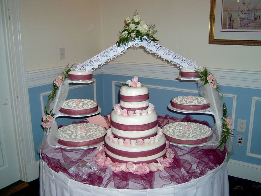 WOW, that looks like a lot of work. It came out wonderful. I like the lace. What are the sizes of the center cake?????