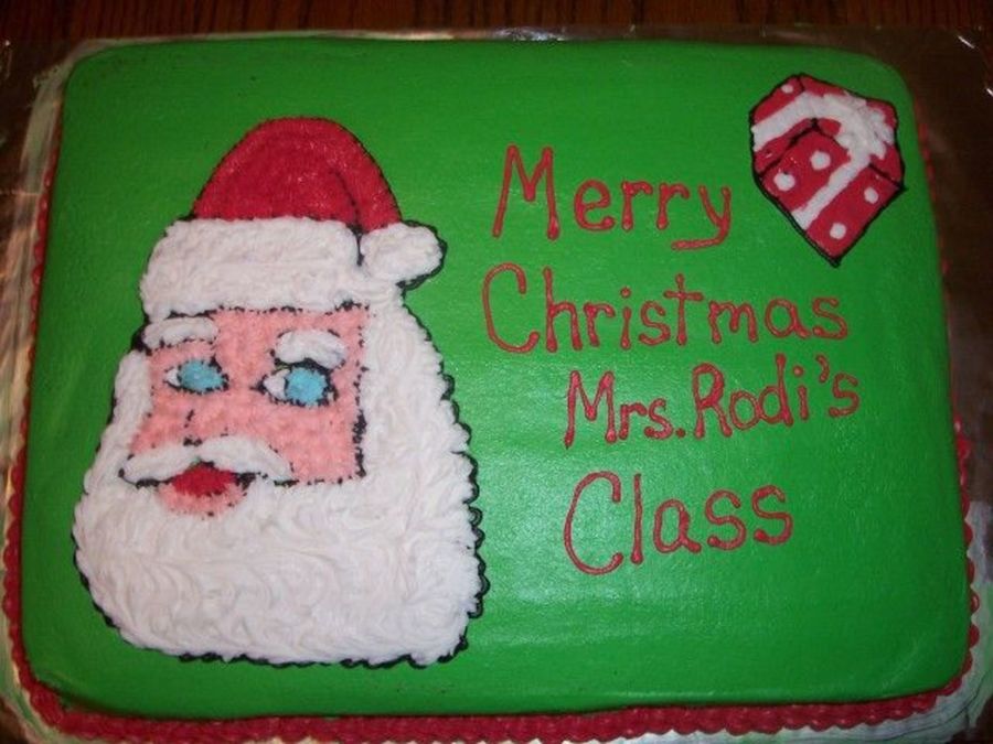 Imade this cake today for my daughter's Christmas Party at school. I free handed Santa and the present. Turned out pretty well I think. It's all buttercream icing. It was also my first time using the Viva paper towel method I just found out about that method!!)