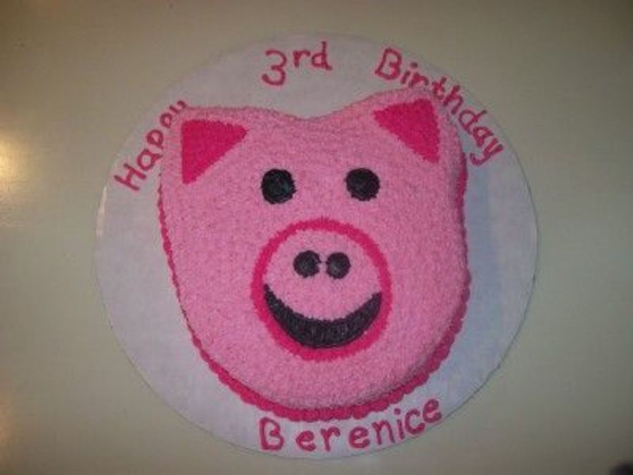 Pig done using a round pan and cutting out cake from another for ears. All done in buttercream. Thanks for the idea from Cake Central website.