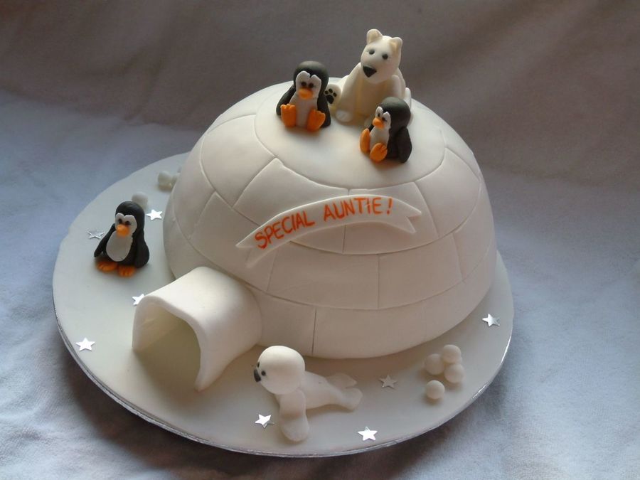lady wanted a cake for her auntie...she left the design entirely up to me so i thought id tryan igloo cake (wanted to do one for ages!!) little figures are inspired by my xmas cards!!