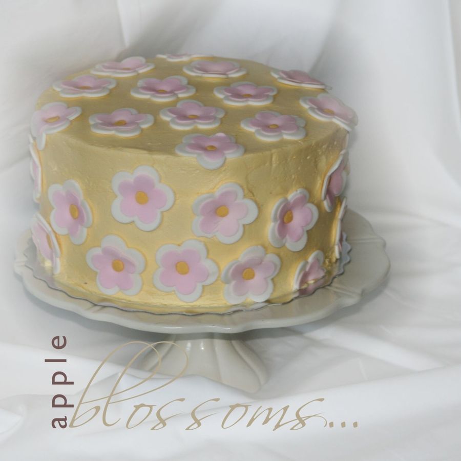 I made this cake for my mom to take to her aunt, who is turning 95 tomorrow. I had originally planned for pansies, but they didn't turn out like I wanted so I opted for apple blossoms. I live in *apple country*, so I thought it would be fitting... ;0)