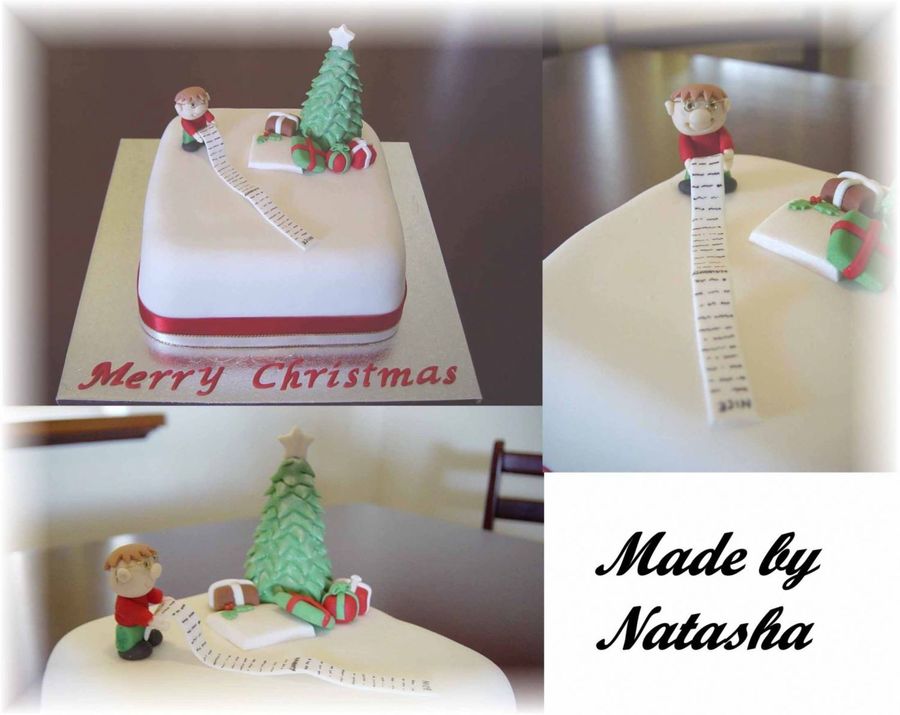 6inch fruitcake marzipanned and covered with FondX. My first time working with marzipan. Found it very difficult to use and so my cake covering is warped and untidy. Details made from modelling paste, except for his glasses which I made from jewellery wire. Parts of this design borrowed from someone here on cc. I cannot credit the designer yet because their name has not been shown in the holiday contest. Thanks for looking.