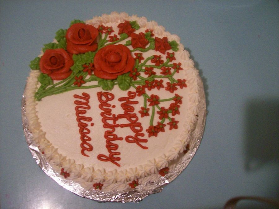 Cake is chocolate with whipped frosting. Roses and flowers are buttercream. For my boss' birthday.