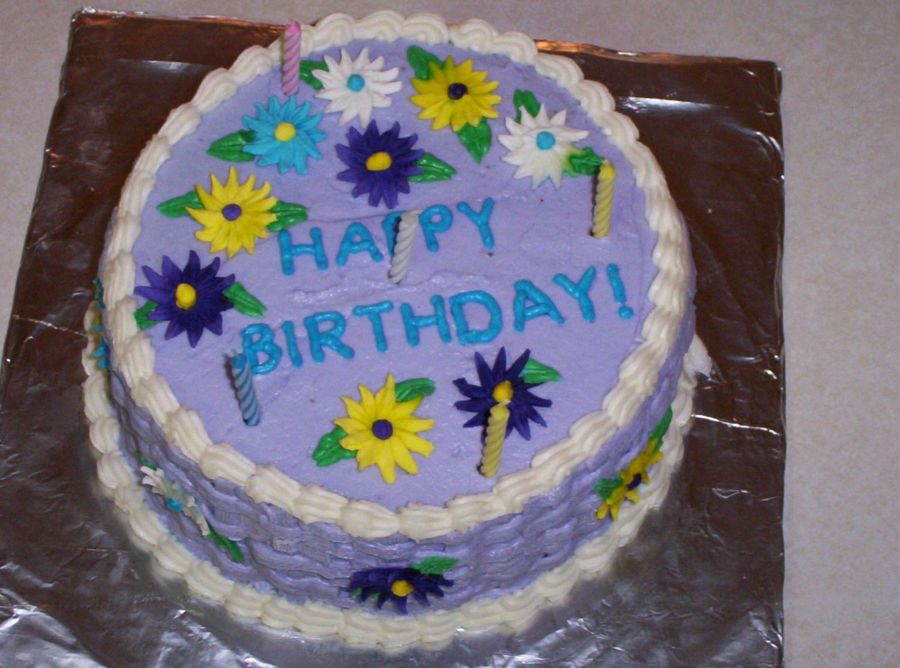 This was one of my first cakes. I made it for my birthday because I wanted to try out daisies and those are my favorit flowers. They're not perfect, but they worked