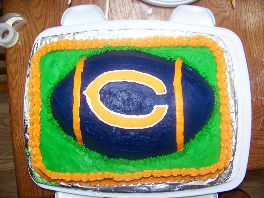I made this cake for a going away party. The chicago bears logo is a FBCT. The foot ball went on a little crooked. But other than that I think it turned out ok. I am still quite new at this a need a little more practice.