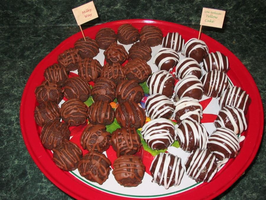Instead of making cake for my family Christmas gathering, I made several flavors of cake ball. We had carrot cake drizzled with white chocolate, chocolate cake covered in chocolate, low-sodium (yellow) cake covered in chocolate and milky way cake balls drizzled with fudgy icing.