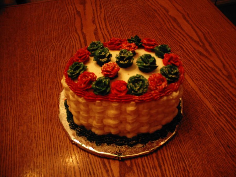 JaneK on 28 Dec 2006 , 4:54am very pretty Christmas cake! Love basketweave and your roses are lovely and festive!