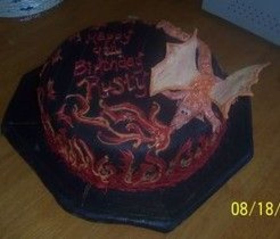 Choc MMF w/ gumpaste dragon and choc flames. Thanks for looking. :)