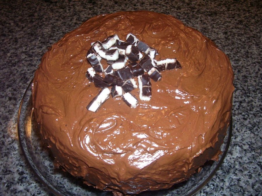 This was such a yummy cake! I made it for Christmas dessert! It is a chocolate cake with a peppermint buttercream filling! It was my first attempt at a chocolate ganache...as you can see it didn't turn out quite like I hoped, but nonetheless was delicious!