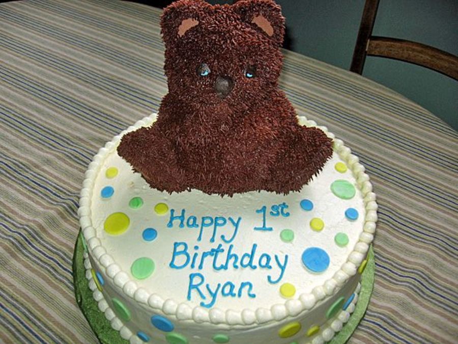 Teddy Bear Cake. Inspired by a wilton cake. Fondant accents.
