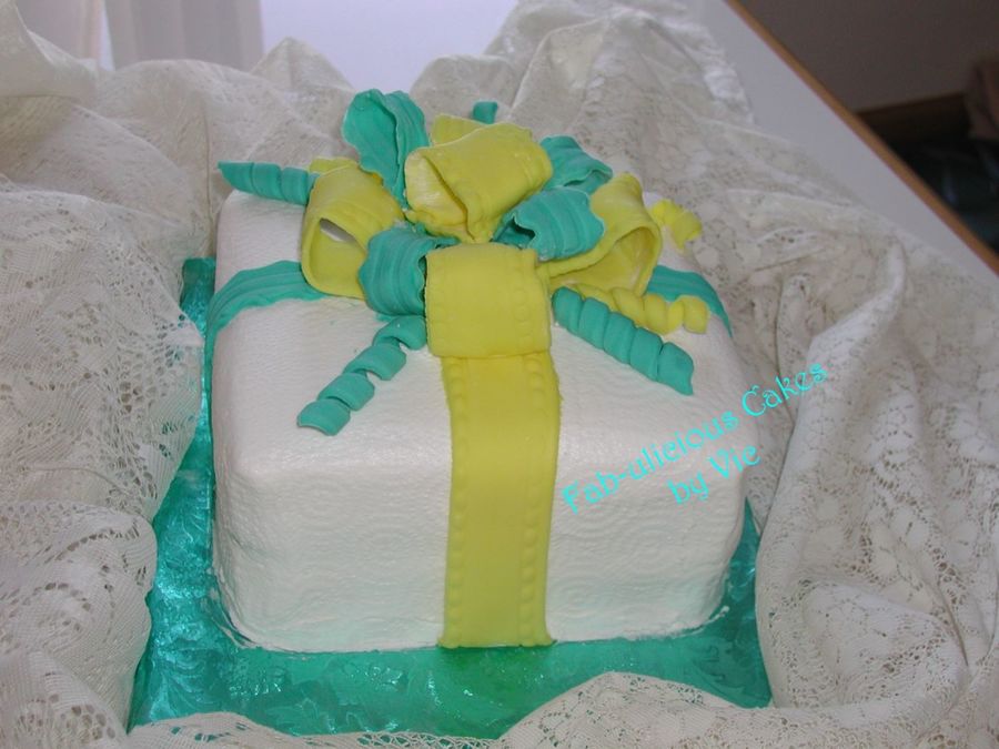 Made this for In-laws anniversary. Vanilla Cake with strawberry filling. This was the 2nd time I tried fondant and 1st attempt at making a bow. Need practice but was happy overall on how it came out.