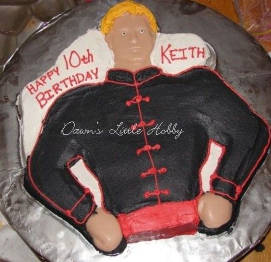 French vanilla cake with chocolate filling and almond buttercream icing. Made last year for my son's birthday party we held at our kung fu dojo. Made from the Batman/Superman character pan. I used colored candy melts to make the face and hands, using the pan as a mold. I love using this pan. It's gotten a lot of milage... Oh, and I took the picture before I remembered to add eyebrows. *grin*