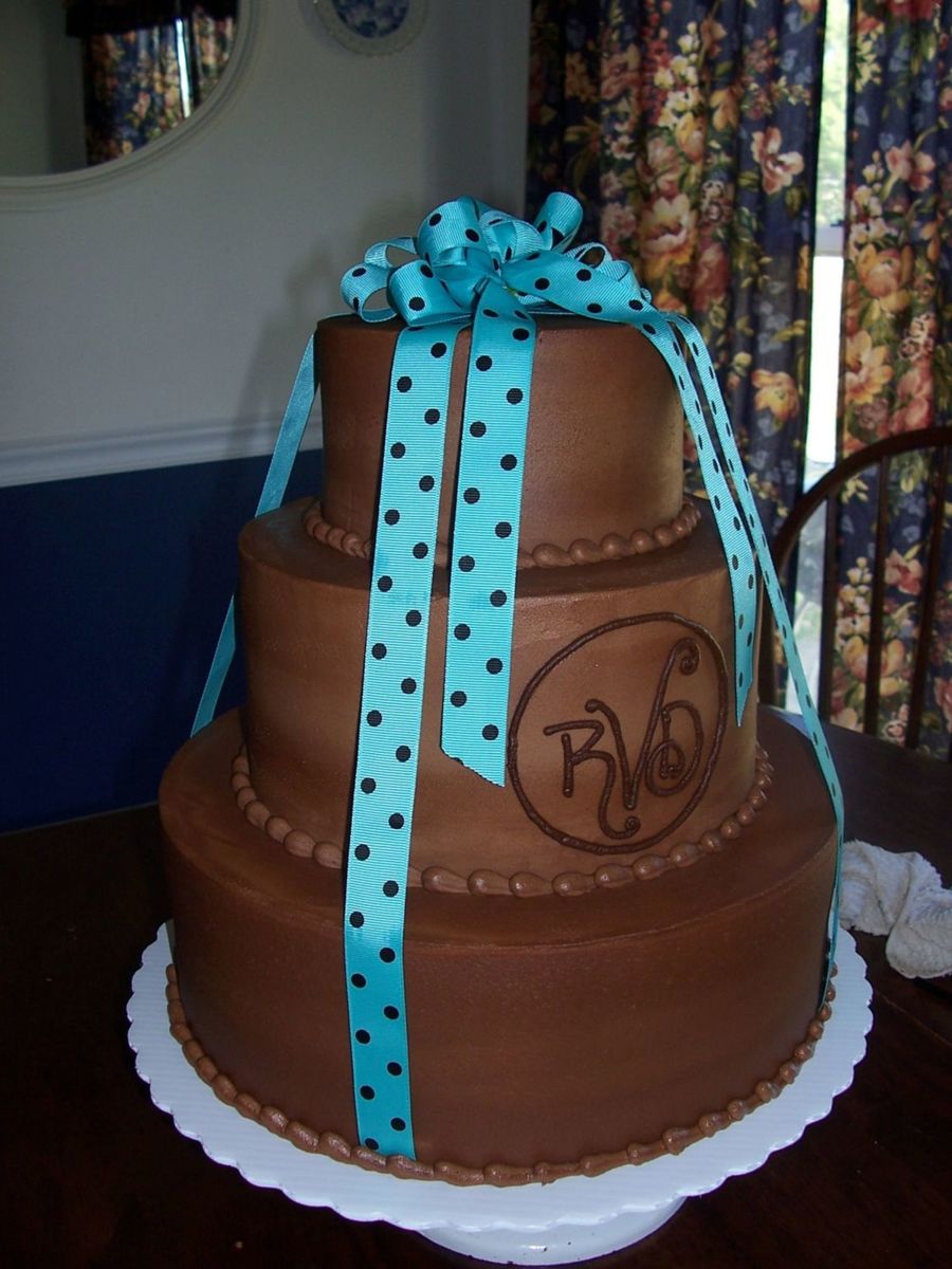 4dollars on 3 Jan 2007 , 3:09pm Very classy! I just love a smooth chocolate cake! Did you free hand the monogram? It looks great!