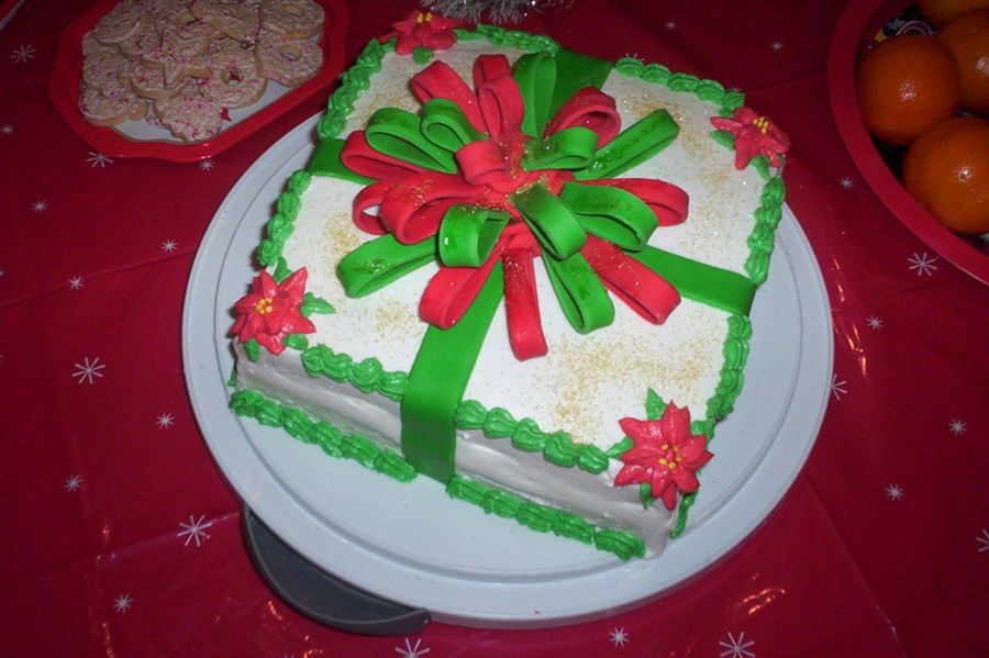 This was the first time I made a fondant bow and buttercream poinsettas. Next time, I think I will make my bow thicker, I should have made more loops but ran out of time and lol. The bow has glitter on it and it looked really pretty in person but for some reason in the pic it looks wet. It was rainy here when I had to do the bow and it caused a lot of trouble! Now, I understand why so many of you say humidity is bad for fondant. lol. The cake was a classic white cake with lemon and white chocolate filling
