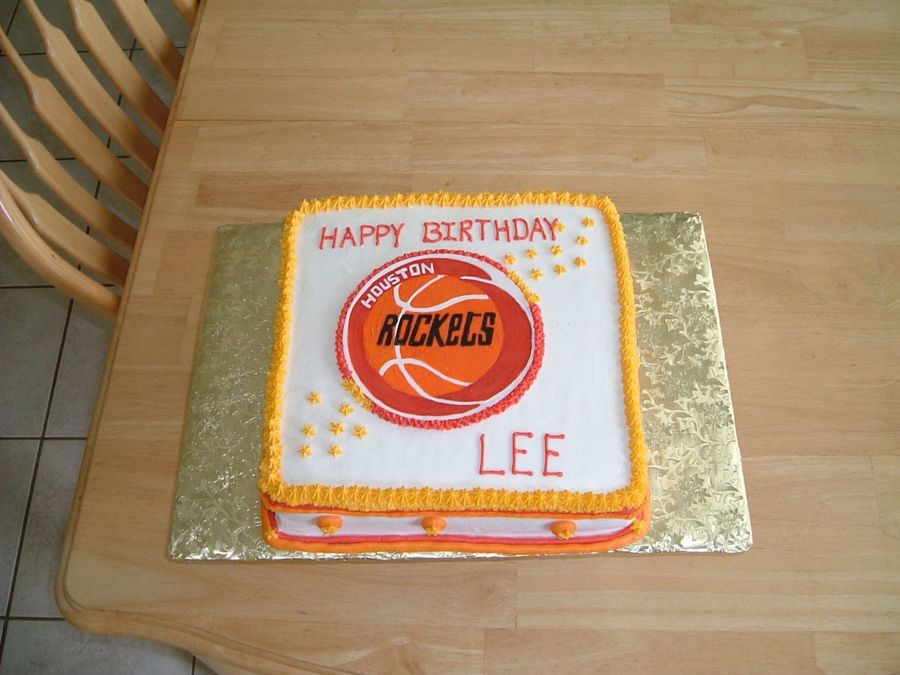 This simple buttercream cake has a hand painted plaque of the boys favorite basketball team. I used tip #18 for the top border with a #5 tip for the underlining top border as well as the bottom borders. The border around the plaque is a #14 tip. The "stars" were created from the drop flower tip #33.