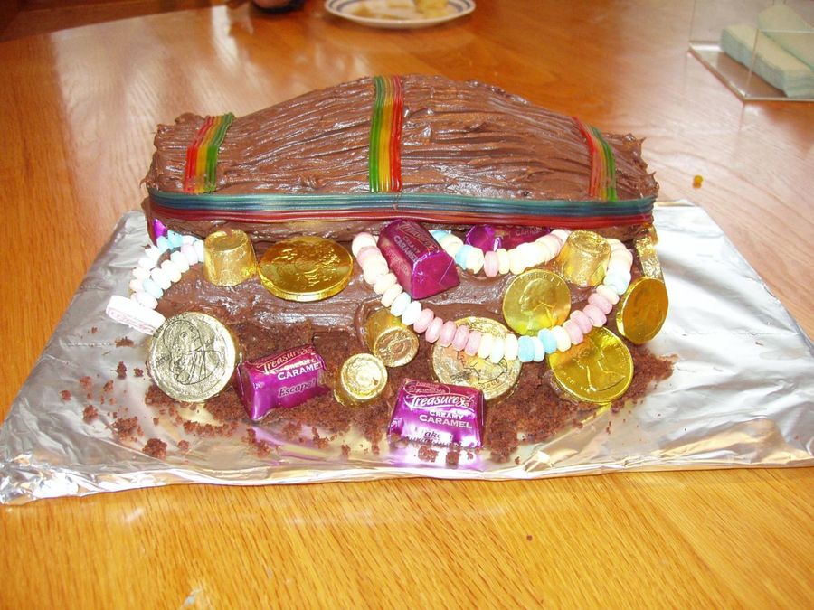 You actually cut a part off the back and crumb it up to make the dirt in the front. So it is really not open just an illusion. It won't let me give you the link to the site but if you go to family fun.com and then type in treasure chest cake you will find it.