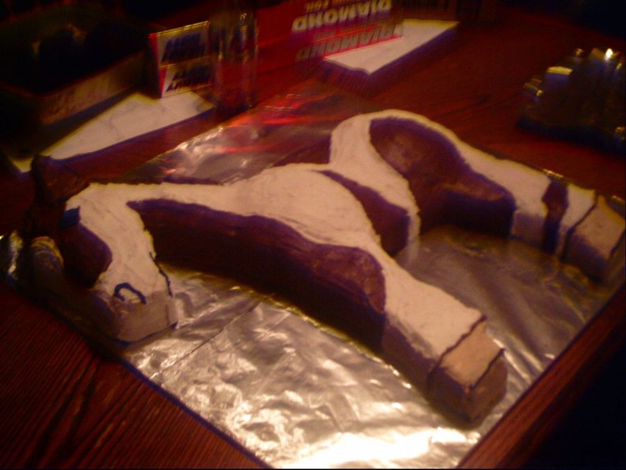 buttercream on hand carved choc. cake