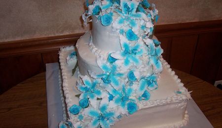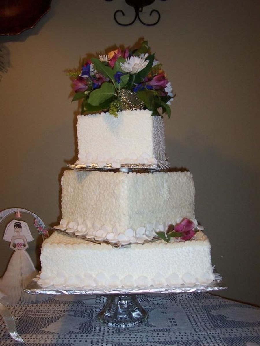 This was a throw together last minute cake the bride did all her own flowers there were beautiful to bad this is a bad picture.