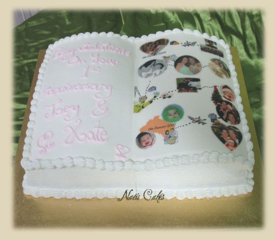 This cake went together as one order with the baby baptism cake. Both of them were to feed 150ppl. The edible image has photos of the things the couple has gone through from the time they got married, including going to Europe for him to play soccer, the baby's birth, injuries, etc. Just got an Sms from the girl's aunty who ordered the cake from me, to say they were soo thrilled that Kate cried when she saw the cake and that Joey was speechless. Im happy : )