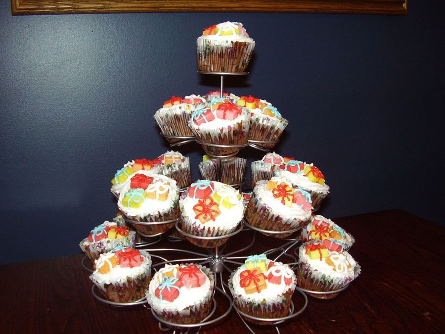 Made chocolate cupcakes and added unwrapped Starburst to look like presents on top - they went over very well at my husband's office
