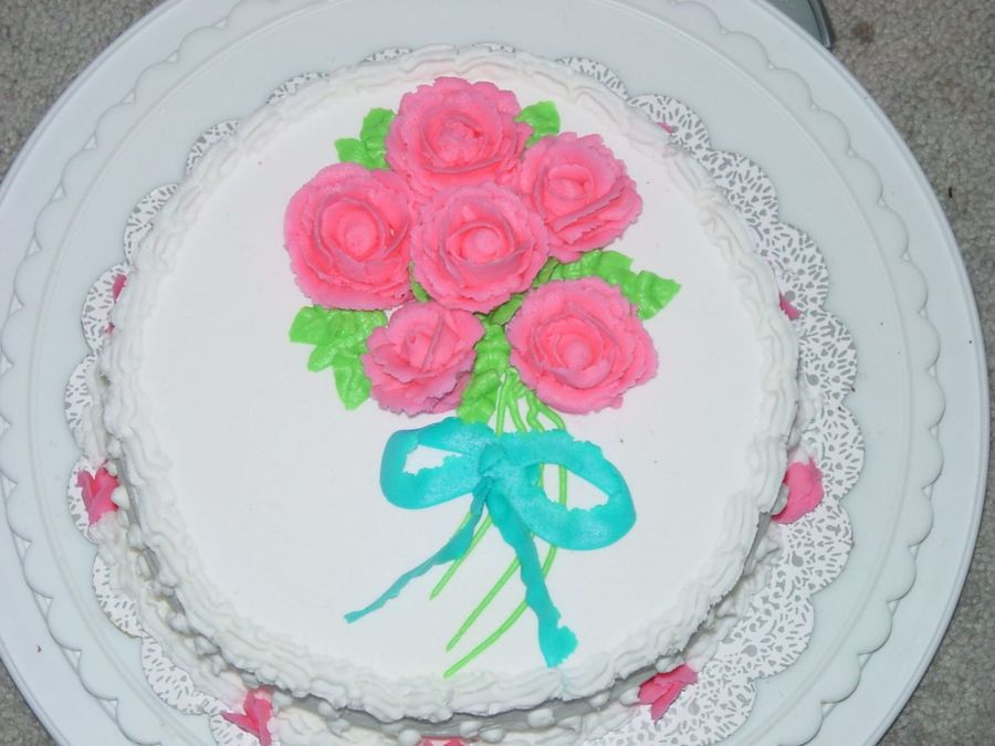 Very pretty cake. You did a great job on the rose spray.