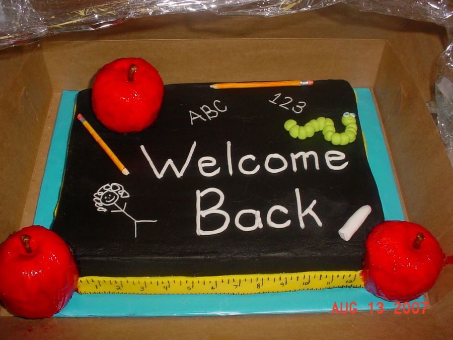 All buttercream except apple stems, pencils, ruler, and worm which are fondant.